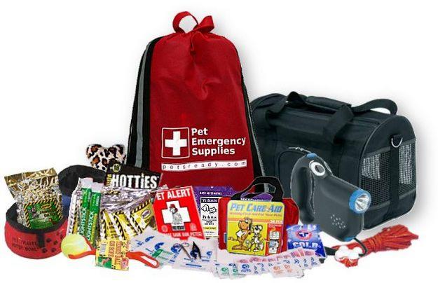- Pack a “pet survival” kit: Include pet food, bottled water, medications, veterinary records, cat litter/pan, food dishes, leashes and a first aid kit.